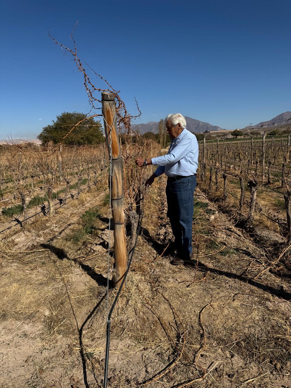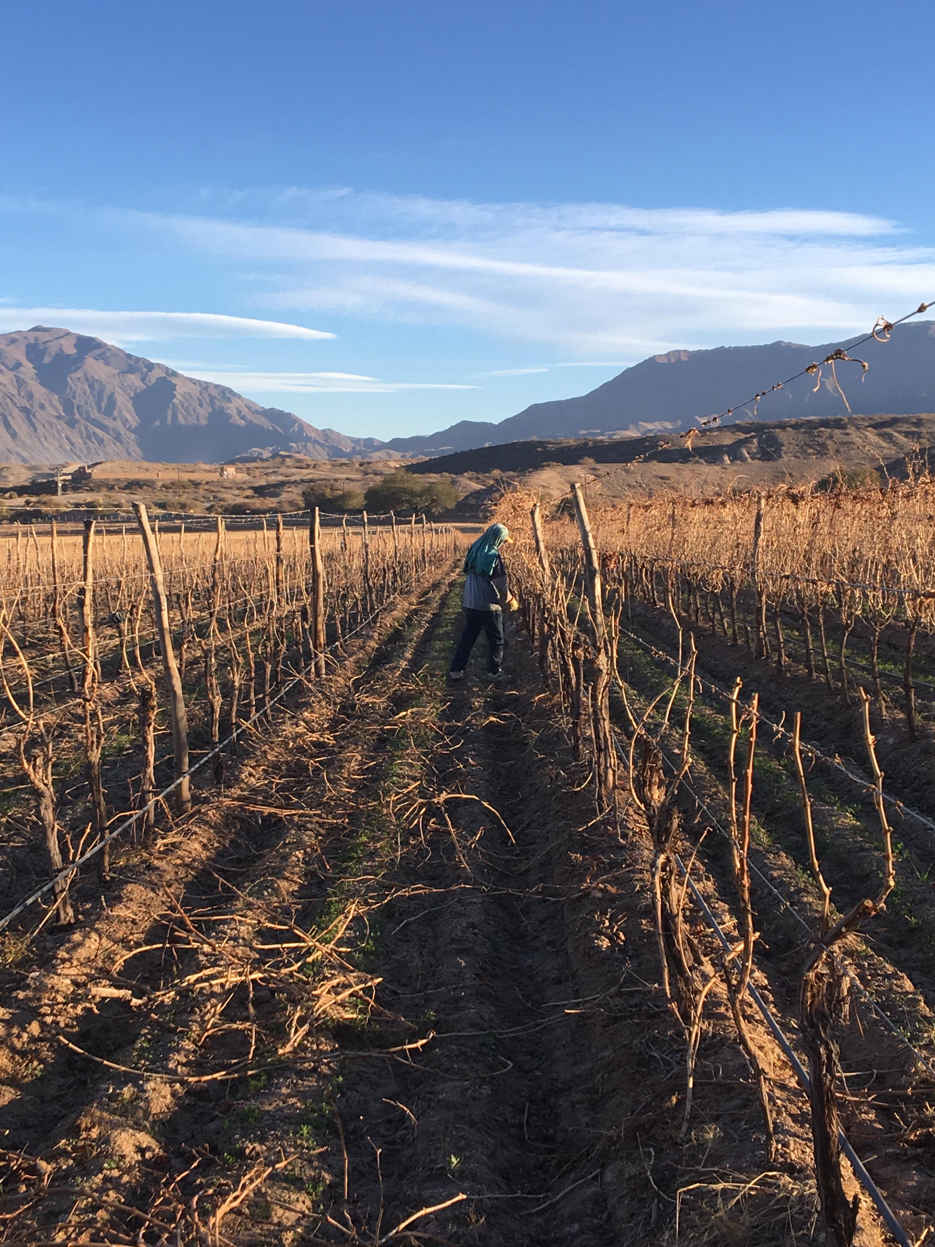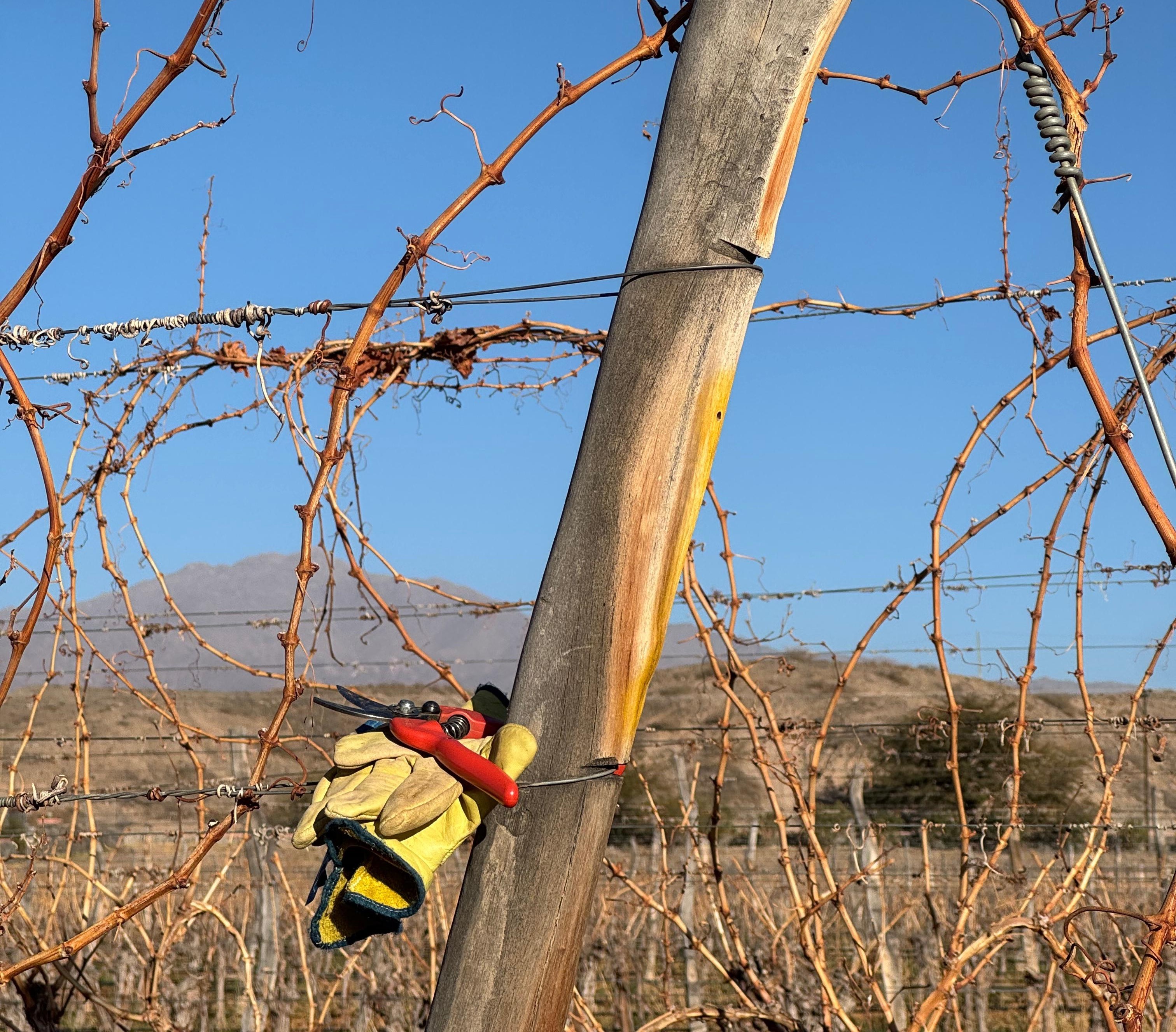 A través de la poda, controlamos el equilibrio entre el crecimiento vegetativo y la producción de fruta, adaptándonos a las características únicas de nuestros viñedos en los Valles Calchaquíes. En esta región, el clima seco, la gran amplitud térmica y los suelos francoarenosos nos permiten trabajar con una sanidad excepcional y una expresión varietal intensa. La poda nos permite potenciar esas condiciones naturales, orientando la planta para que exprese todo su potencial.